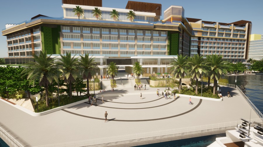 ▲台南「安平港悅椿度假酒店」室外景觀設計。(圖片/冠鼎建設)