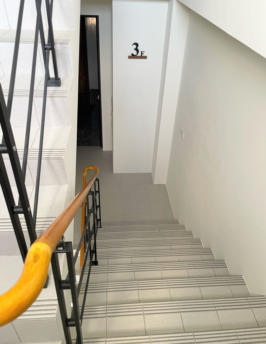 溫潤質感與溫度:樓梯間的扶手採用溫潤的欅木建構,造型簡約流暢,觸感光滑。這不僅提供給偏好步行健身的住戶一個安全選擇,更讓每一次的進出,都充滿儀式感!