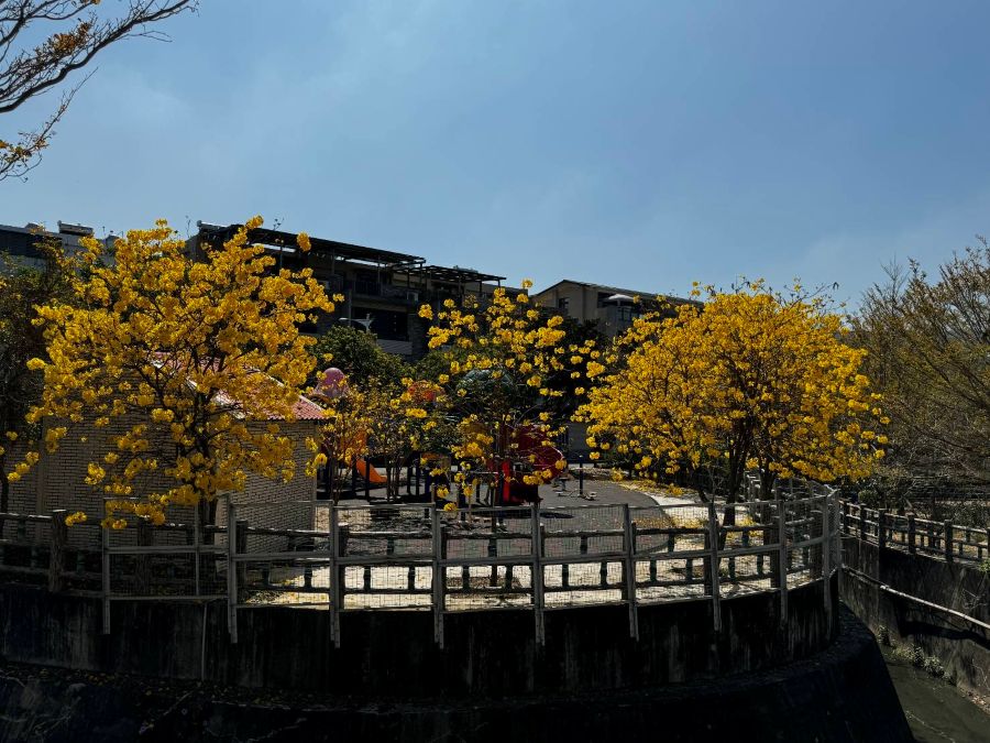 ▲【碧寓】坐擁水岸第一排,每逢春分,兩側的黃色風鈴木便熱烈綻放。(圖片/冠鼎建設)