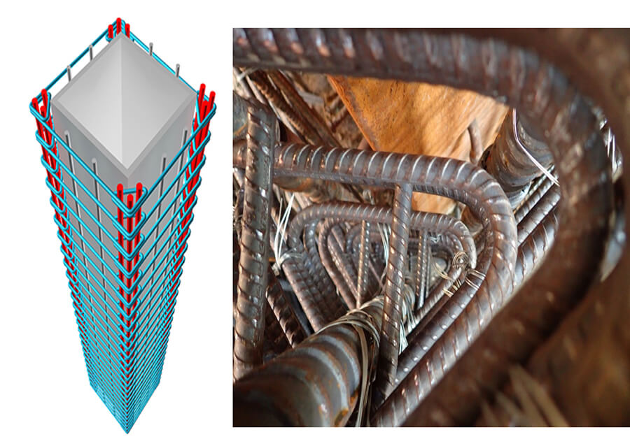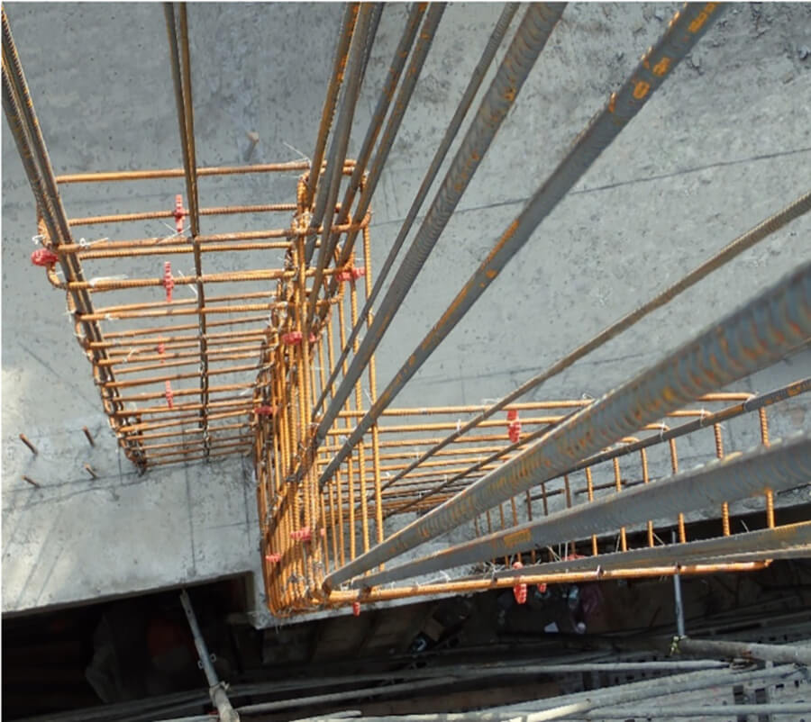 ▌ 「Alfa Safe SRC柱中柱」工地現場綁紮柱鋼筋實體品質呈現,施工可省去焊接工、綁步減少,降低傳統SRC柱邊角之環繫筋組件眾多綁紮繁複問題,提升安全品質,可縮短施工工期。