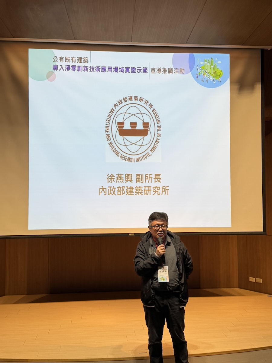 內政部建築研究所徐燕興副所長表示,公有既有建築具備政策示範與擴散關鍵性,透過場域實證方式,有助於建立一致的技術導入邏輯與評估基準,強化淨零建築政策之可執行性與可複製性。