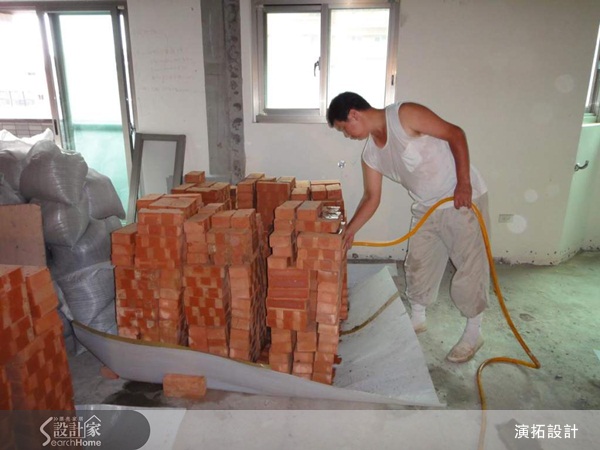 好的設計師對每件事都很細心:師傅為磚頭澆水,底下會鋪防水墊,以免水滲漏到樓下