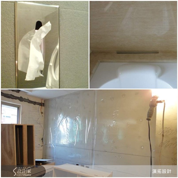 下:衣櫃施工前,在壁面鋪防潮布,可避免未來衣物的受潮問題